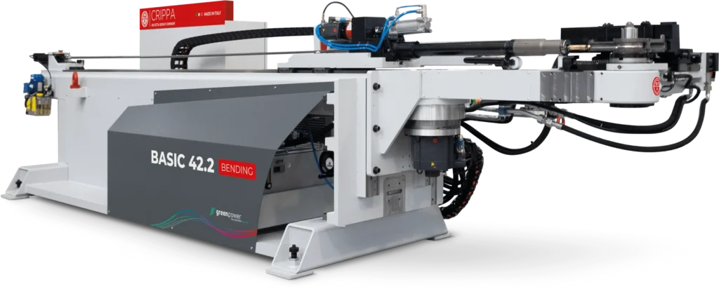 La BASIC 42.2 se puede reconfigurar rápidamente sin necesidad de ajustes complejos para doblar tubos con diferentes radios, reduciendo así los tiempos de preparación. La alta rigidez de los componentes mecánicos, especialmente la estructura, garantiza la máxima precisión y repetibilidad. En general, tanto los mínimos tiempos de preparación como la rigidez estructural de las máquinas las hacen idóneas para la producción a alta velocidad. El cabezal está diseñado para que el operario pueda cambiar manualmente la dirección de doblado a derecha o izquierda con facilidad. Los tres ejes que controlan los movimientos de la máquina están accionados por motores eléctricos digitales con tecnología «Elect Motion» y gestionados por el CNC Siemens SINUMERIK 840D sl. La alta velocidad de producción, la amplia gama de accesorios y dispositivos especiales, y la variabilidad del radio de curvatura hacen que estas máquinas sean especialmente versátiles para una gran variedad de industrias. Cada máquina está equipada con un software gráfico tridimensional y una pantalla táctil LCD de 19″ para una comunicación intuitiva entre el operario y la máquina. La interfaz de usuario ISO (UII) facilita la programación, la simulación y la optimización del proceso de doblado de tubos.