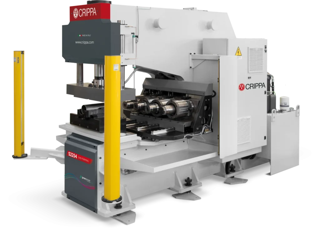 La S2254 es una máquina de conformado de extremos para tubos de gran diámetro, con una notable rigidez y relativa compacidad. La carrera de la abrazadera se puede optimizar para reducir el tiempo de ciclo y su amplia dimensión permite la instalación de dispositivos de bloqueo para curvas de tubos complejas o de gran tamaño. La ausencia de columnas minimiza considerablemente la interferencia mecánica durante el conformado de extremos. El diseño de cuello de cisne de la máquina permite el acceso a tres lados, una ergonomía inigualable que facilita el mantenimiento, el cambio de herramientas y la supervisión de la producción. La S2254 también destaca por su CNC programable que aprende automáticamente para optimizar el tiempo de ciclo y aumentar la productividad. La opción «Ahorro de Energía» ahorra significativamente más energía que otras máquinas de tamaño similar. La S2254 está diseñada para integrarse en el sistema de producción Smart Factory.
